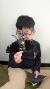 ハロウィンの季節にはトイレットペーパーの芯や木の枝を使ってコウモリを制作しました🎃