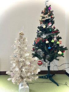 所内ではクリスマスツリーとみんなが制作したリースを飾っており、